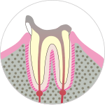 歯根の先や周囲にまで炎症がおよび、歯茎の中の骨が溶けて、さらに痛みが起こり熱が出ることもあります。